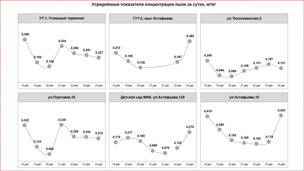 В период с 18 по 24 февраля в Находкинском морском торговом порту превышение норм запыленности воздуха не фиксировалось.