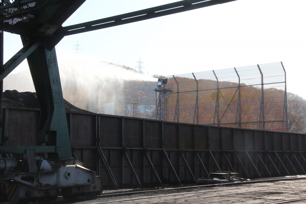 Новые круглогодичные пушки пылеподавления установлены на мачтах высотой 15 метров, они обладают дальностью распыления до 80 метров и радиусом поворота 360 градусов. Установка дополнительных пушек пылеподавления позволит создать над штабелями угля водяную завесу, которая будет препятствовать распространению пыли за периметр производственной площадки.