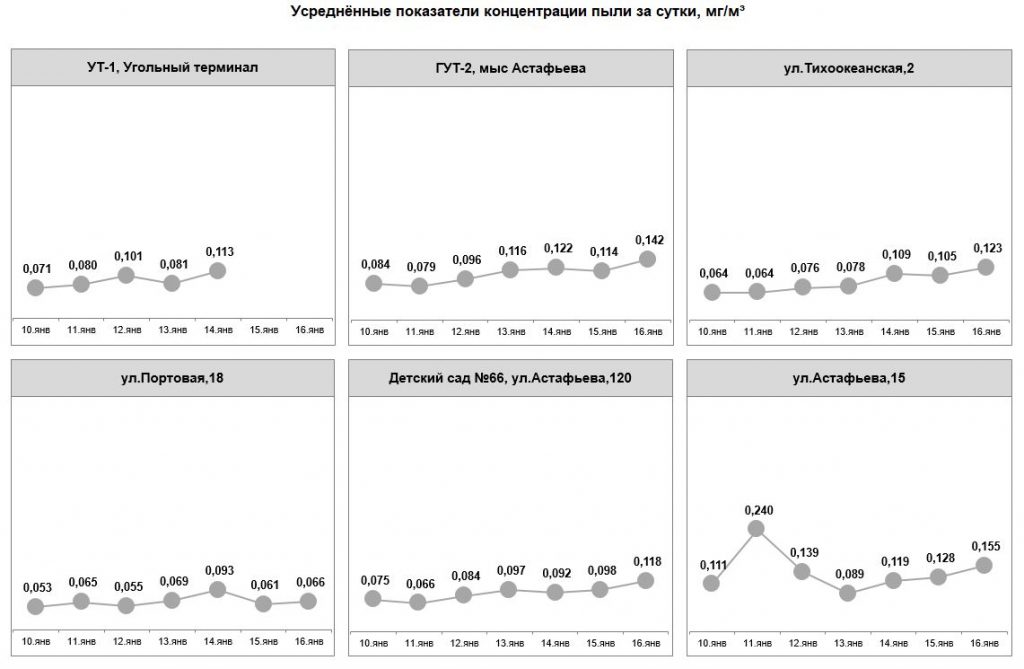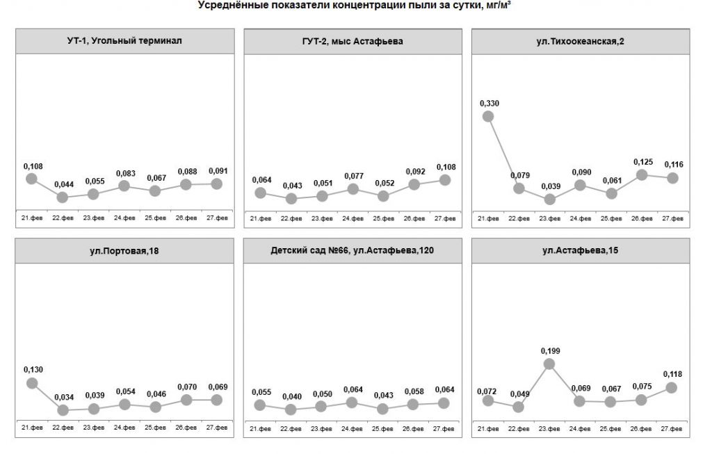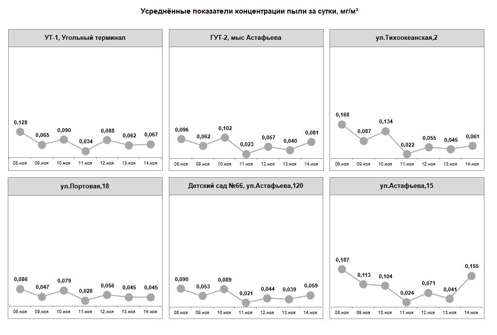 С 02 по 08 октября превышение норм запыленности воздуха не фиксировалось. Показания датчиков составляли от 0,027 до 0,139 мг/м3.