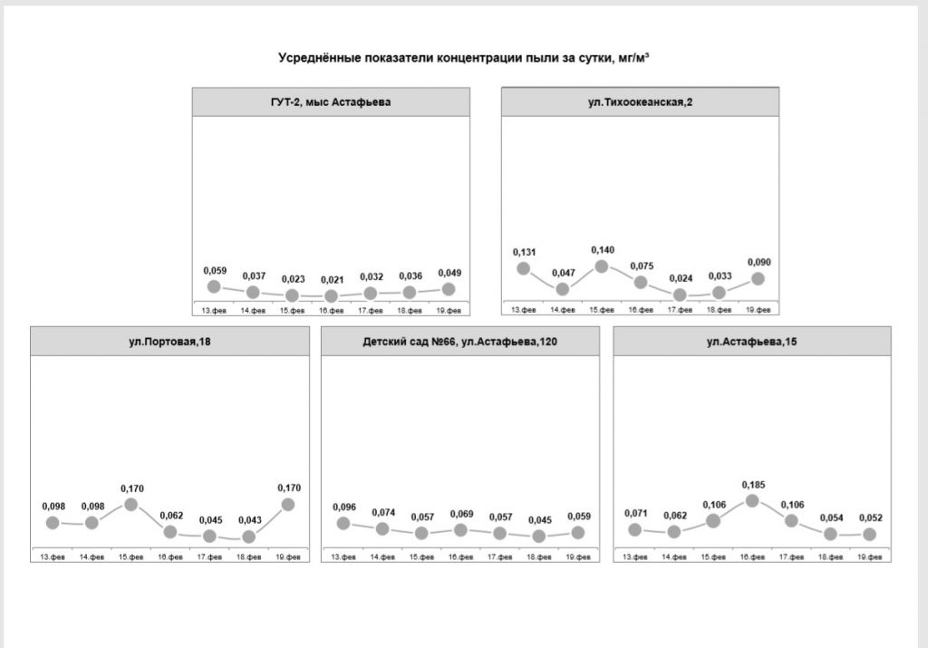 В период, с 12 февраля по 19 февраля 2021 года приборами автоматического контроля, установленными на производственных площадках и границе санитарно-защитной зоны (СЗЗ), превышения предельно-допустимой концентрации пыли (взвешенных веществ) в атмосферном воздухе не регистрировались.