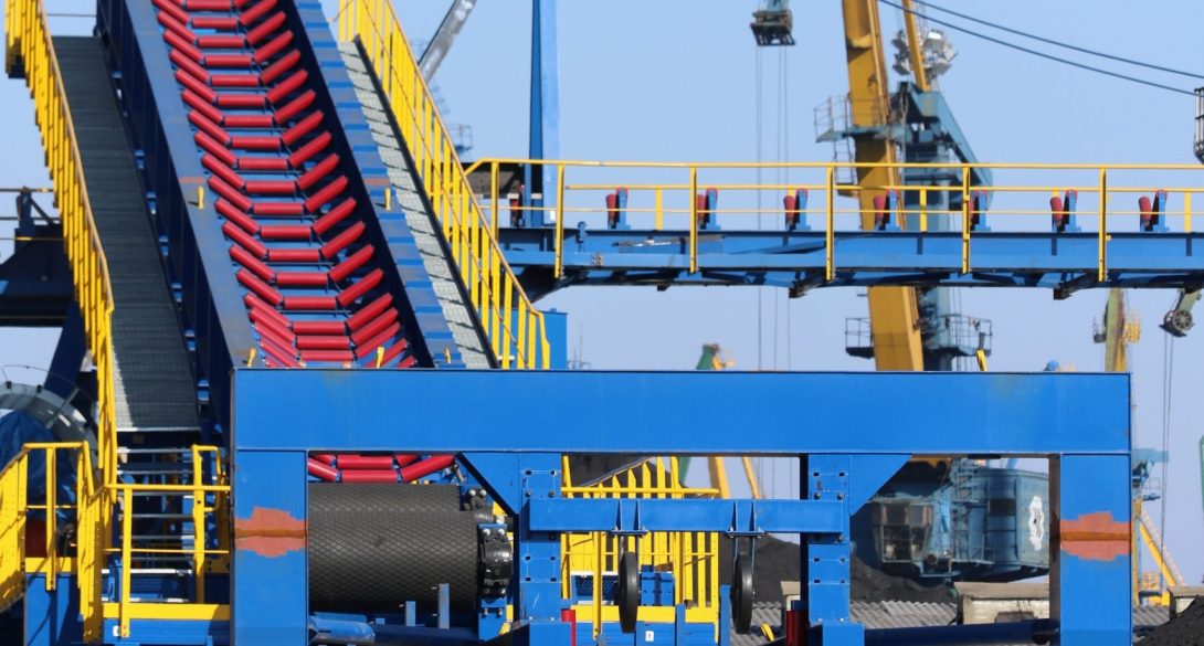 К настоящему моменту строители собрали наклонный конвейер стакера вагоноопрокидывателя, установили петлевой перегружатель и роликоопоры с вращающимися роликами для конвейерной ленты.