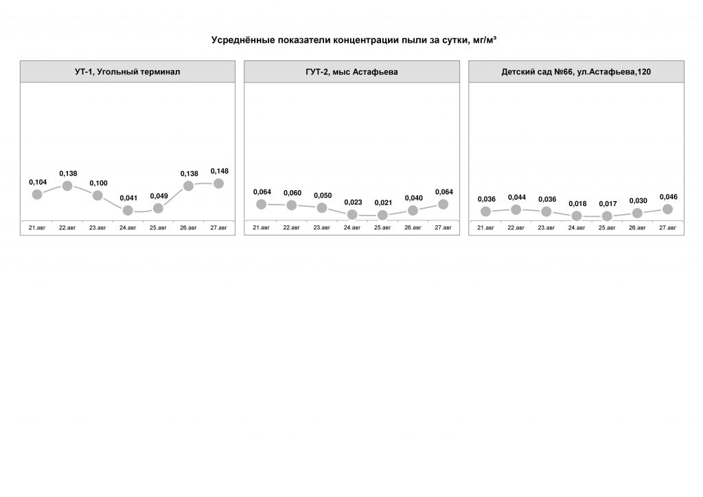 С 21 по 27 августа превышение норм запыленности воздуха не фиксировалось. Показания датчиков составляли от 0,017 до 0,148 мг/м3.