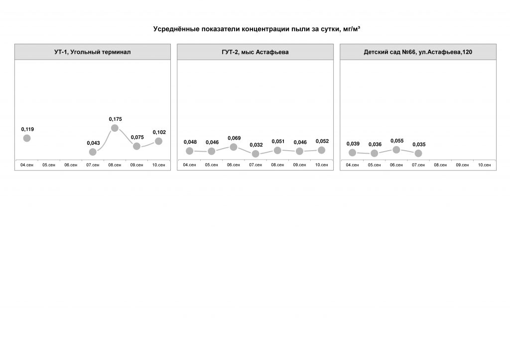 С 4 по 10 сентября превышение норм запыленности воздуха не фиксировалось. Показания датчиков составляли от 0,032 до 0,175 мг/м3.